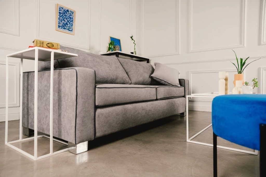 Es un sofá de 3 cuerpos, con 2 almohadones de asiento de placa de goma espuma de alta densidad y 2 almohadones de respaldo rellenos de vellón siliconado. Tiene un camastro móvil para mayor comodiad y patas bajas de goma invisibles antideslizantes o patas altas de madera. Tapizado con tela chenille de pelo corto anti desgarro o pana anti manchas. Consultar por la opción patas metálicas.